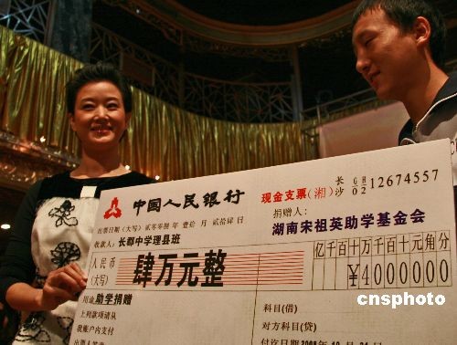 圖:宋祖英基金會出資捐助災區(qū)學子