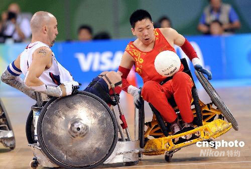 圖:殘奧輪椅橄欖球開戰(zhàn) 中國隊不敵美國隊