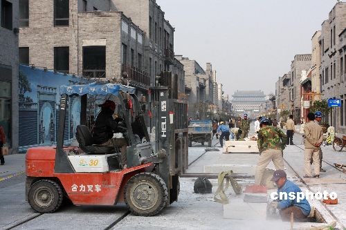 圖:前門大街進(jìn)行路面保養(yǎng) 靜候"鐺鐺車"