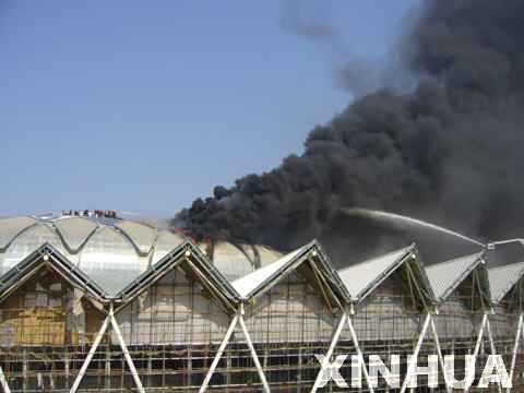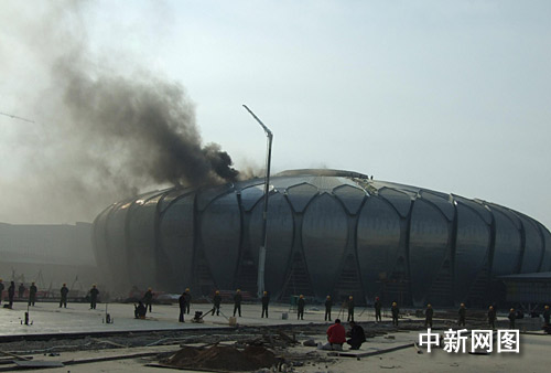 在建的濟(jì)南奧體中心場(chǎng)館再次發(fā)生火災(zāi)(圖)