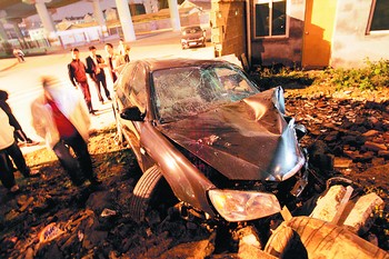 長(zhǎng)沙一輛轎車撞進(jìn)基建工地內(nèi)