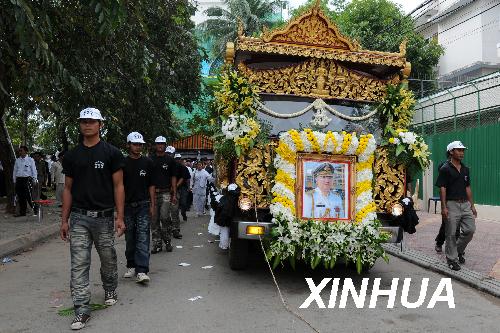圖:柬埔寨國家警察總監(jiān)遺體被運往故鄉(xiāng)