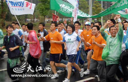 王軍霞帶領(lǐng)南昌萬人跑 市民雨中展激情