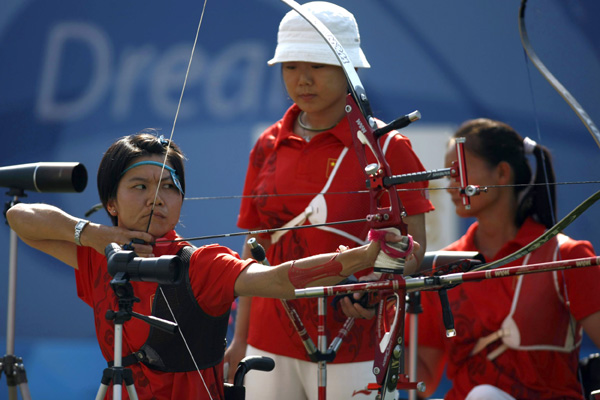 9月15日,北京殘奧會迎來第九個比賽日的征程,產(chǎn)生50枚金牌。其中游泳在最后的比賽日產(chǎn)生17枚金牌,另外一個金牌大戶田徑產(chǎn)生18枚金牌。15日上午在國家體育場進行的女子鐵餅F42/44/46級決賽中,中國隊包攬了金、銀、銅三枚獎牌,金牌總數(shù)達到64枚,超越了雅典殘奧會的63枚。