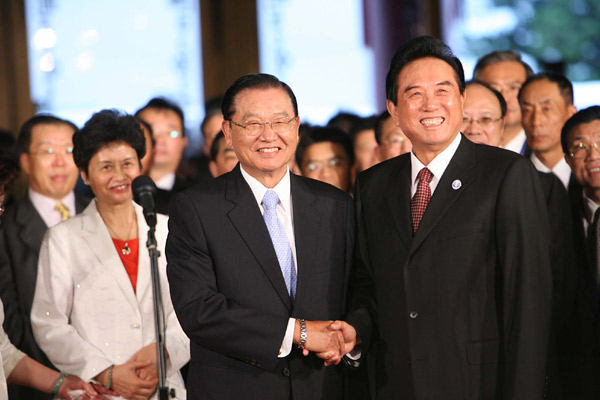 11月3日—7日,海協(xié)會(huì)會(huì)長(zhǎng)陳云林率協(xié)商代表團(tuán)訪問(wèn)臺(tái)灣。訪臺(tái)期間,陳云林拜會(huì)辜振甫遺孀辜嚴(yán)倬云女士;和;鶗(huì)董事長(zhǎng)江丙坤分別代表兩岸簽署了空運(yùn)、海運(yùn)、郵政和食品安全四項(xiàng)協(xié)議;與馬英九會(huì)面。五天四夜的訪臺(tái)行程緊張而富有成效。陳云林以“欣慰、憧憬、感謝”三詞總結(jié)此次歷史性的臺(tái)灣之行,并與;鶗(huì)董事長(zhǎng)江丙坤相約明年在大陸再次相逢。【陳云林訪臺(tái)專題】 |
