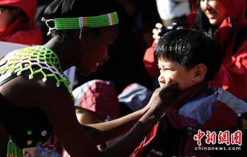 圖:世界杯中國(guó)球童親密接觸南非土著民族