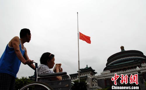 重慶一市民輪椅上哀悼舟曲遇難同胞