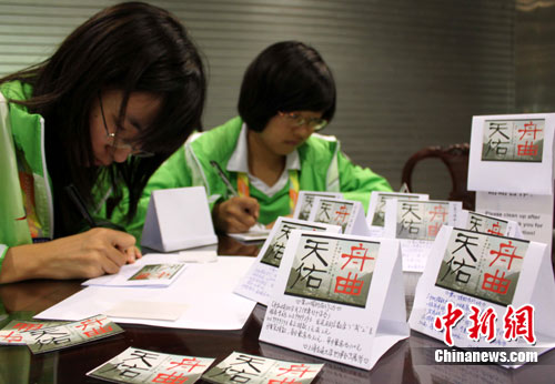 世博會(huì)志愿者制作“天佑舟曲”愛心卡