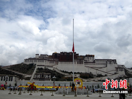 布達(dá)拉宮降半旗 哀悼舟曲遇難同胞