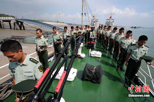 海南海警官兵海上花祭 哀悼舟曲遇難同胞