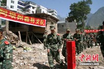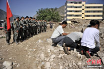 武警官兵舟曲廢墟上為災(zāi)區(qū)捐款