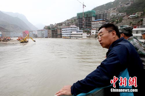 水利部部長(zhǎng)陳雷舟曲察看淤積江段水情
