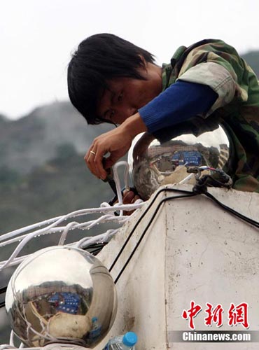 甘肅舟曲災(zāi)區(qū):電工雨后檢修線路