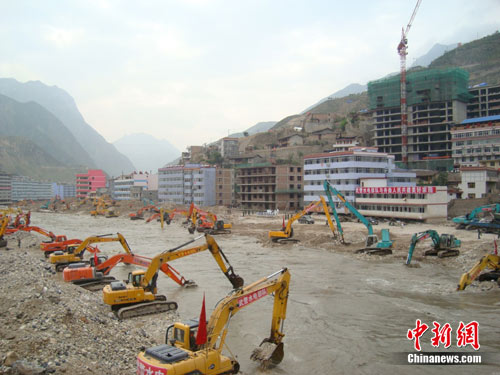 圖:舟曲災(zāi)區(qū)白龍江泄洪槽開挖