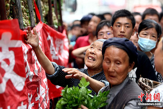 圖:舟曲民眾為遇難同胞獻(xiàn)花