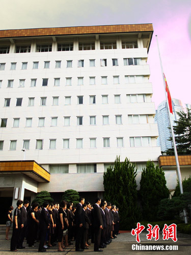 中國(guó)駐日本大使館為甘肅舟曲災(zāi)區(qū)降半旗默哀