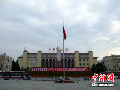 成都天府廣場(chǎng)降半旗悼念舟曲罹難同胞