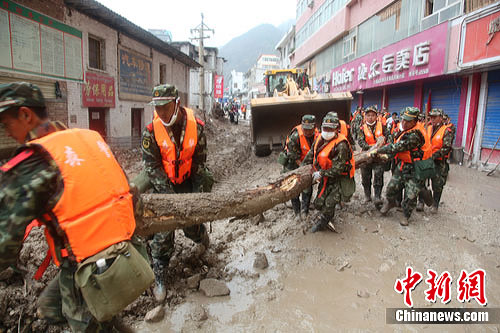 圖:武警官兵在舟曲進(jìn)行清淤救援行動(dòng)
