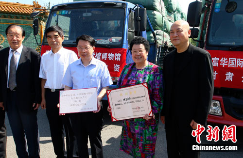 紫檀博物館館長(zhǎng)陳麗華向舟曲捐贈(zèng)一萬(wàn)條毛毯