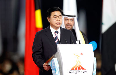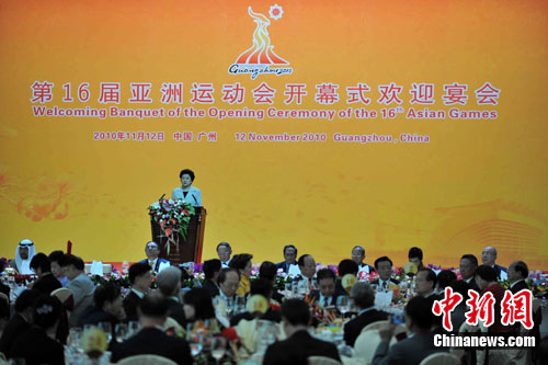 劉延?xùn)|歡迎各國嘉賓蒞臨廣州參加亞運會開幕式
