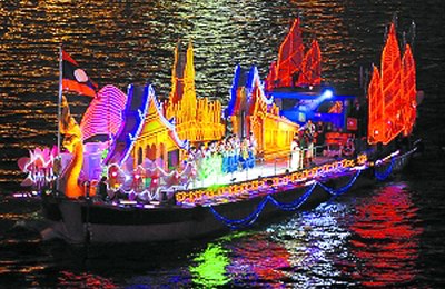 圖:亞運花船陸續(xù)抵達海心沙參加閉幕式