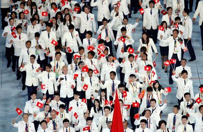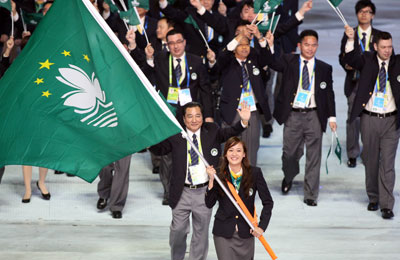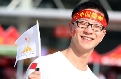 廣州俊男臉涂彩繪出席亞運會開幕式
