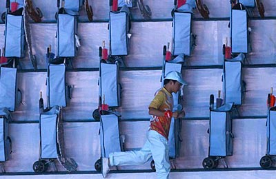 參賽國家和地區(qū)旗幟一字排開靜待閉幕