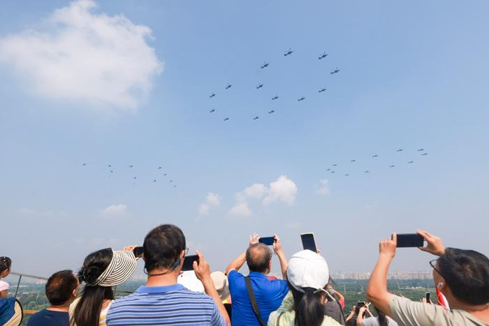 (抗戰(zhàn)勝利80周年)紀(jì)念中國人民抗日戰(zhàn)爭暨世界反法西斯戰(zhàn)爭勝利80周年大會(huì)在京舉行 民眾關(guān)注空中梯隊(duì)