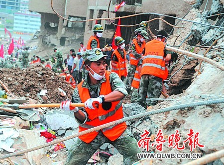 戰(zhàn)士們忙著救人,以至于忘了溫家寶總理到現(xiàn)場的具體時間。