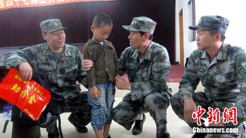 師長張寶軍說,救下男孩后,部隊(duì)忙于救人,與男孩失去聯(lián)絡(luò)。這段時(shí)間以來,張寶軍對男孩極為牽掛,他希望找到這個(gè)“光屁股”孤兒,了卻一樁心愿。8月22日上午10時(shí),在旺起鎮(zhèn)小學(xué),張寶軍終于見到了“光屁股”男孩張官博,他輕輕將男孩抱起,告訴他要堅(jiān)強(qiáng),要樂觀,要好好生活!拔視詡(gè)人的名義,一直資助你上大學(xué),你記住爺爺?shù)脑挘獔?jiān)強(qiáng)。”張寶軍眼睛濕潤,卻堅(jiān)定的看著“光屁股”男孩。(完)