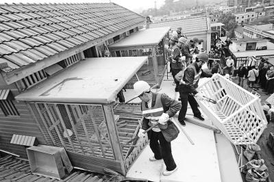 樓頂搭建超豪華鴿子“別墅”,飼養(yǎng)價值不菲的賽鴿,引來居民投訴。昨日,武昌區(qū)黃鶴樓街城管部門,在下達多次“拆違通知書”無果后,對這一違法建筑進行強拆。據(jù)稱,鴿主僅建這一超豪華“鴿舍”,就花費50萬元。