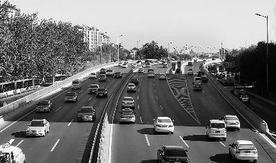 11月3日單雙號(hào)限行期間,早高峰時(shí)段,二環(huán)路上車流不多 攝/法制晚報(bào)記者 楊益 曹博遠(yuǎn)