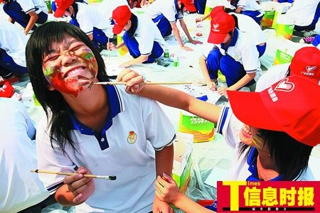 昨日上午,由廣州市委宣傳部、市教育局、團(tuán)市委主辦的2007年廣州市成人宣誓活動(dòng)隆重舉行。全市15萬名18歲青年參加了宣誓。在主會(huì)場,1800名18歲青年以涂鴉的形式完成了“成年禮”。