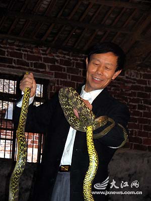 10月16日,本報(bào)(注:江南都市報(bào))記者赴宜春向蛇王老黃拜師學(xué)藝,既感受了隨蛇王體驗(yàn)抓毒蛇時(shí)的心驚膽戰(zhàn),也聽到了蛇王驚心動(dòng)魄的歷險(xiǎn)故事。