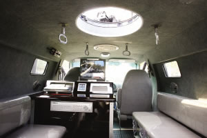 “除了功能上的特殊性,這輛車還裝備了很多高科技裝備!”張國(guó)強(qiáng)介紹說(shuō),除駕駛員外,這輛全封閉的車子可以搭載12名突擊隊(duì)員,但這樣一來(lái),換氣就成了問(wèn)題。所以,在該車中部天窗附近,還增設(shè)了一處特制的換氣扇,保證了車內(nèi)充足的氧氣量;其次,該車還配備了特制的逆變電源,就算是車子在停止?fàn)顟B(tài),通過(guò)這種特殊的設(shè)備,12伏的電壓也能在瞬間轉(zhuǎn)變?yōu)?20伏電壓,以保證車內(nèi)電腦、監(jiān)控屏幕等電子設(shè)備正常工作。