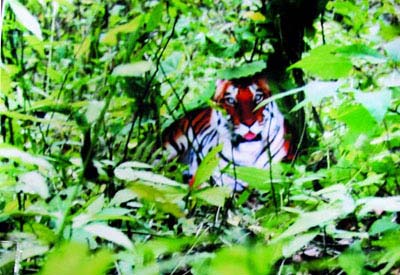 這是周正龍用數(shù)碼相機(jī)拍攝的第24張野生華南虎照片,也是整組照片中成像最好的一張(局部裁剪圖)