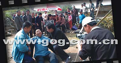 “5、4、3、2、1,開拍!”導(dǎo)演陳遠東一聲令下,圍觀的村民們屏住呼吸觀看!断慊稹穭〉难輪T依次出場了,當(dāng)天拍攝的劇幕是主人翁李大娘因為不滿意兩個兒子大貴和二富瞞著她帶媳婦到鎮(zhèn)計生站做了避孕手術(shù),在自家院子與兩兒子大吵大鬧。