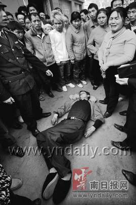 記者在現(xiàn)場看到,傷者躺在馬路中間,妻子抱著丈夫滾在地上痛哭不已,上百名圍觀市民看到這種狀況,紛紛譴責(zé)執(zhí)法人員。情緒激動者還將執(zhí)法人員圍住,現(xiàn)場一片混亂,該路段交通短暫堵塞。十多分鐘后,傷者被執(zhí)法人員抬到路邊,交通得以緩解。
