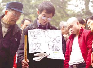 什么樣的乞丐,竟擁有“粉絲”?出現(xiàn)在記者眼前的是一個年輕男子:1.65米個頭,穿件灰撲撲外衣,鼻梁上架著眼鏡,右手杵根竹拐棍,左手拿《增廣賢文》,念念有詞。