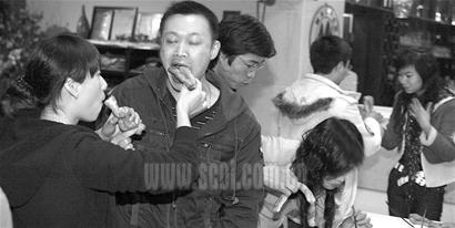 “告別單身,不做光棍!”昨日下午,由本報(bào)(注:華西都市報(bào))城區(qū)論壇、四川在線網(wǎng)友發(fā)帖組織的單身派對(duì)上,單身男女們將代表光棍節(jié)的四根油條“狠狠”吃下了肚,以誓“脫光”(脫離光棍隊(duì)伍)的決心。