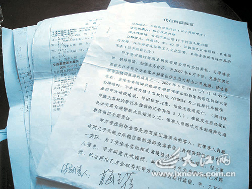 11月7日,徐金香的兒子鐘擁軍告訴記者,他們親屬對于這張《代位賠償協(xié)議》非常不滿。因為當鐘履玲帶著賠償協(xié)議和16萬多的賠償金回到九江后,親屬們拿到協(xié)議書一看,發(fā)現(xiàn)了讓人不滿的條款。