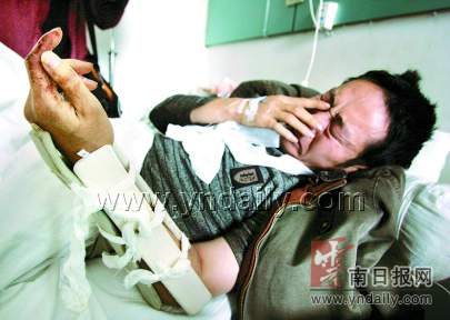 記者看到李君鐘時,他正準備做手術,主治醫(yī)生告訴記者,李君鐘多處軟組織挫傷,頭部受傷縫了7針,左臂骨折,傷情跡象表明,肯定是嚴重的外力所致!拔以趺催@么倒霉啊!因為找不到自己的車,就挨了一頓打!”說起當晚的情形,李君鐘忍不住淚流滿面,他說,當晚,因為和朋友多喝了幾杯,記得自己的車停在錦苑花園小區(qū)門口,但可能是喝多了,到門口一看,卻怎么也找不著車了,難道車被偷了?他趕緊四處找車,不知不覺就進了小區(qū)。剛進小區(qū),突然有幾名保安跑過來,二話沒說就開始打他……