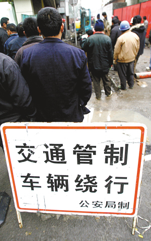 路邊塌陷現(xiàn)場,前日的大坑面積已進一步擴大,深度超過2米。來自市自來水公司、北京市公用設(shè)施搶險大隊的工人和網(wǎng)通20多名工作人員,一邊研究地下的結(jié)構(gòu)和線路,一邊進行搶修。