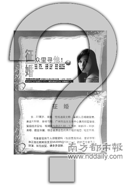 廣州一神秘富家女花50萬元登廣告征婚引爭(zhēng)議(圖)
