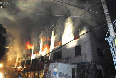 吳女士告訴記者,下午5:30,大部分工人已經(jīng)下班,當(dāng)時(shí)她正在5樓辦公。沒多久,工廠起火,她忙打電話叫仍在廠里逗留的幾個(gè)員工疏散,沒想到,等她出門時(shí),大火已經(jīng)擋住了樓梯通道。