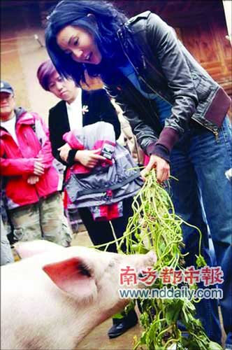 10月11日,張曼玉喂豬。這頭豬后來成了“一代名豬”,但也難逃成為過年豬肉命運(yùn)。