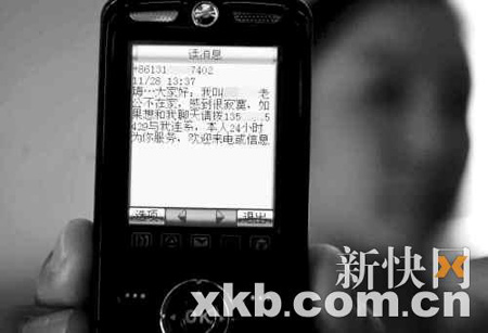 為了追查出發(fā)短信的人是誰,郭小姐還曾讓朋友于小姐幫忙試探對(duì)方?蓻]想,對(duì)方緊接著將騷擾目標(biāo)轉(zhuǎn)到于小姐身上。昨日,于小姐告訴記者,她也被這短信騷擾了一個(gè)月,內(nèi)容也全是色情和誹謗的字眼。