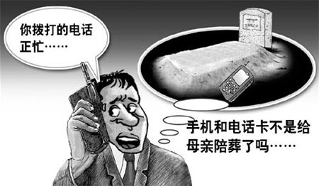 但就在幾天前,陳某一不小心撥打了存在自己手機里的母親的手機號碼,卻聽到了占線的忙音,陳某懷疑自己撥錯了,就又撥了一遍,結(jié)果還是忙音。手機明明下葬了呀,想到這,他不禁出了一身冷汗。晚上,他翻來覆去難以入睡,越想越覺蹊蹺,就把這事告訴了妻子。二人一商量決定第二天到移動公司問個明白。沒想到一問不要緊,更奇怪的事出現(xiàn)了,電腦上竟然顯示出了該手機在母親去世后一個月的通話費用,夫妻倆面面相覷,心里直發(fā)毛,思來想去,他們決定報案,讓警方查個明白。