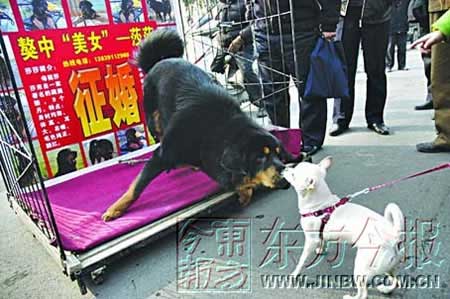 焦作市有一愛狗的市民,為了給自己的藏獒尋覓到一個“如意郎君”,下足了工夫,不但專門請人為愛犬拍了許多寫真集、制作了大幅宣傳畫,還在征婚現(xiàn)場為愛犬鋪上了紅地毯,這只母藏獒享受的級別那是相當(dāng)高。