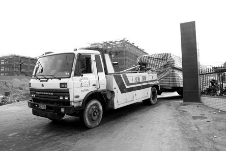 昨天早上約9時30分,多家媒體記者趕到現(xiàn)場,當記者表明身份想進入停車場采訪,兩名自稱為該停車場的工作人員將記者攔在門外,說是領導指示不能讓人進入,讓記者離開。記者后看到有一輛交通清障車拖著一塑料布包裹嚴實的物體離開,記者準備拍照,其中一男子試圖用手阻擋。